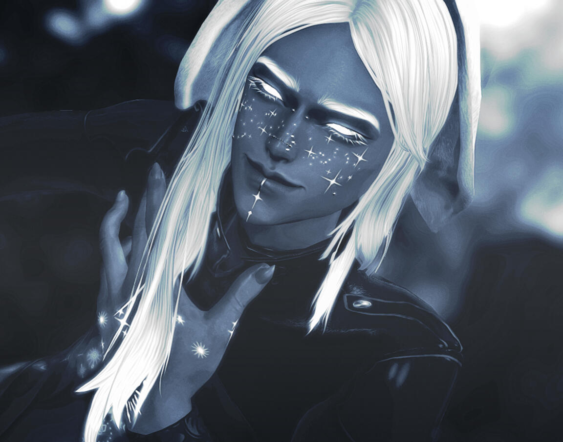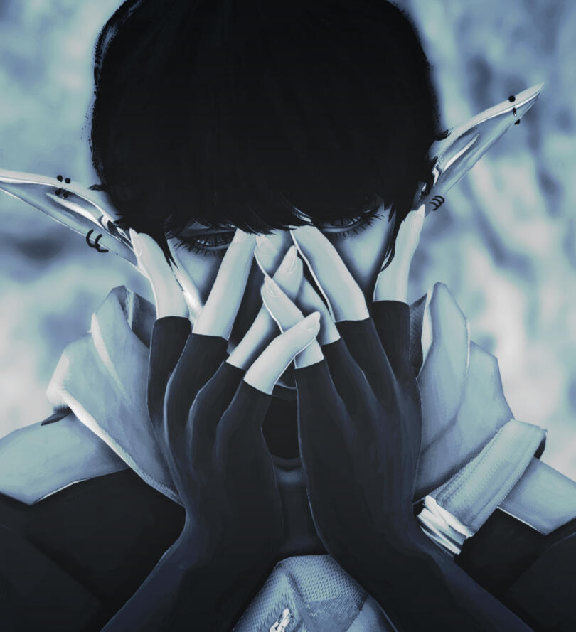 [ he / they / it | alpheus ] — two souls trapped within a single body, lovers from another star, where one was transformed into a voidsent to protect the other. tiresias was born blind and with brittle bones, only having scrolls and books to keep him company, his beloved was turned into a voidsent when they were only teenagers, and scarcely remembers their life before it, only their love for the other. in a pact of love, they share the body of the former, as both simply wish to live a normal life, each with their own strengths and weaknesses, trying to make a single whole person.